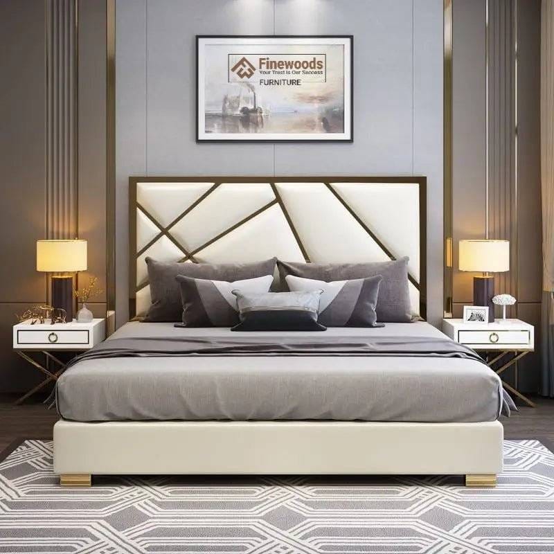 “Reign supreme in sleep with the Iconic Golden Lines Bed😊 👑! 🛋️ Luxurious, hand-crafted, and paired with a premium mattress for ultimate comfort 💤. Elevate your bedroom with this crown jewel 🏠. 😌👍”